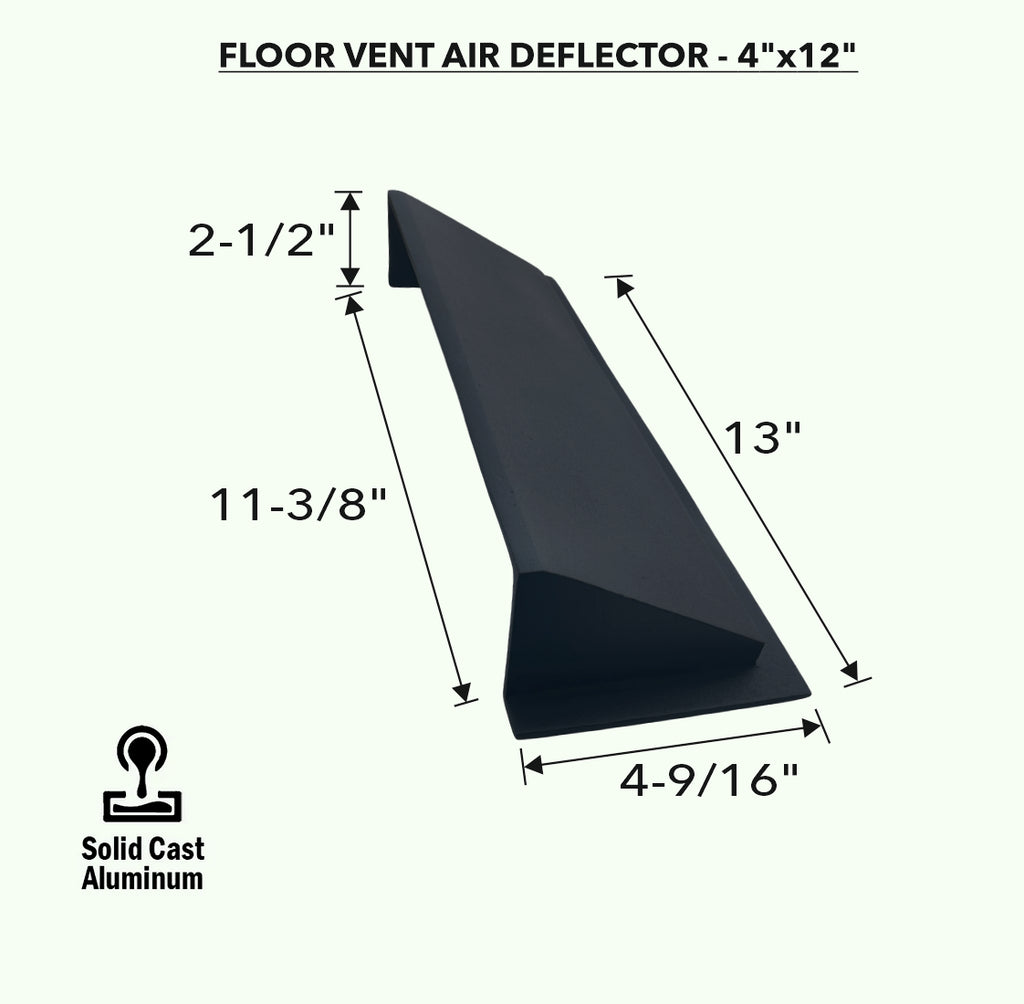 DÉFLECTEUR D'AIR EN MÉTAL POUR ÉVENT DE PLANCHER 4" X 12" EN FONTE MASSIVE