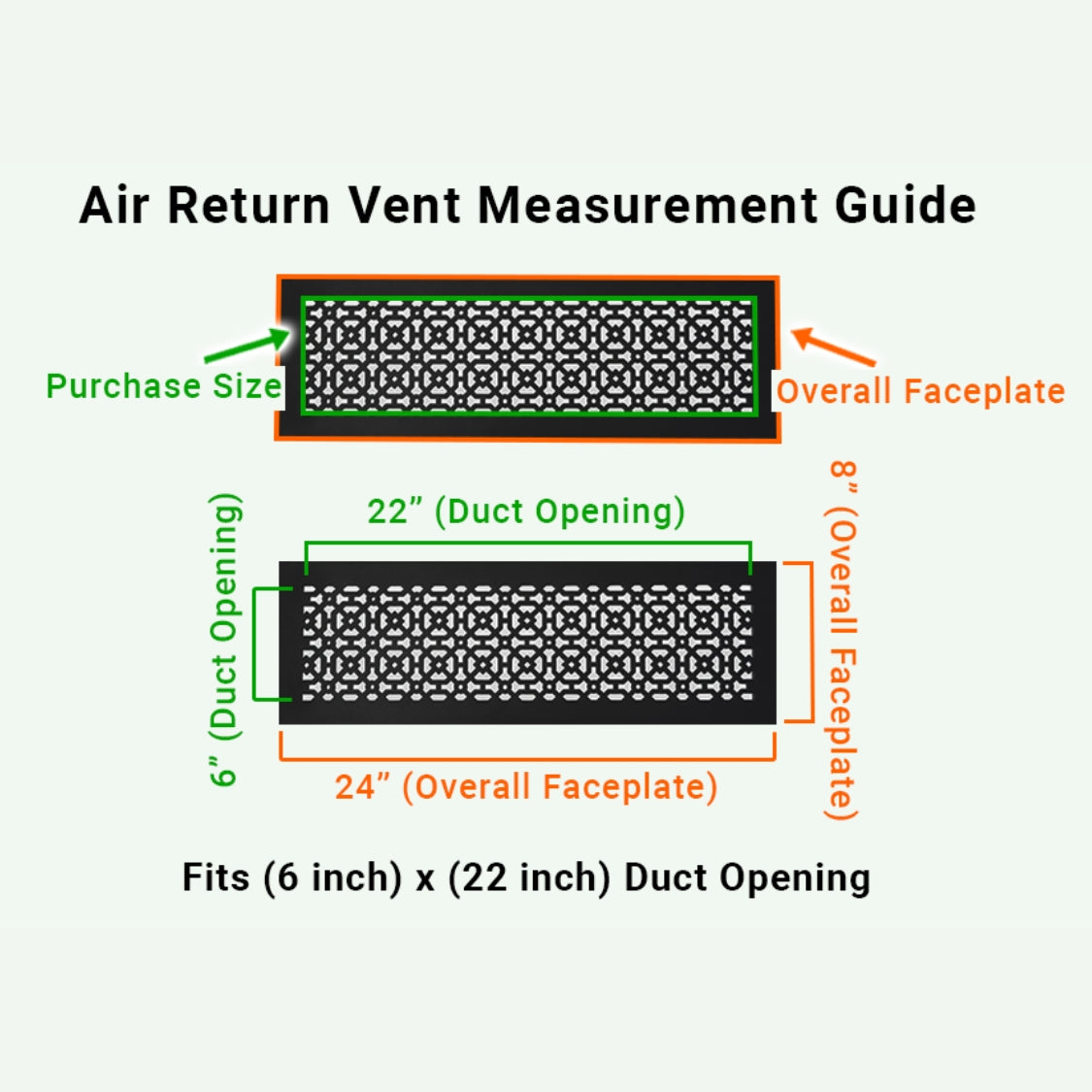• Fits standard duct opening of 6”x22” (Overall face plate size 8”x24”)