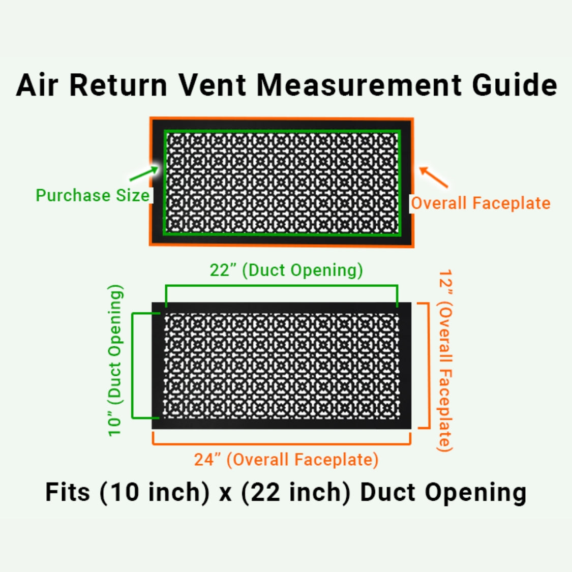 • Fits standard duct opening of 10”x22” (Overall face plate size 12”x24”)