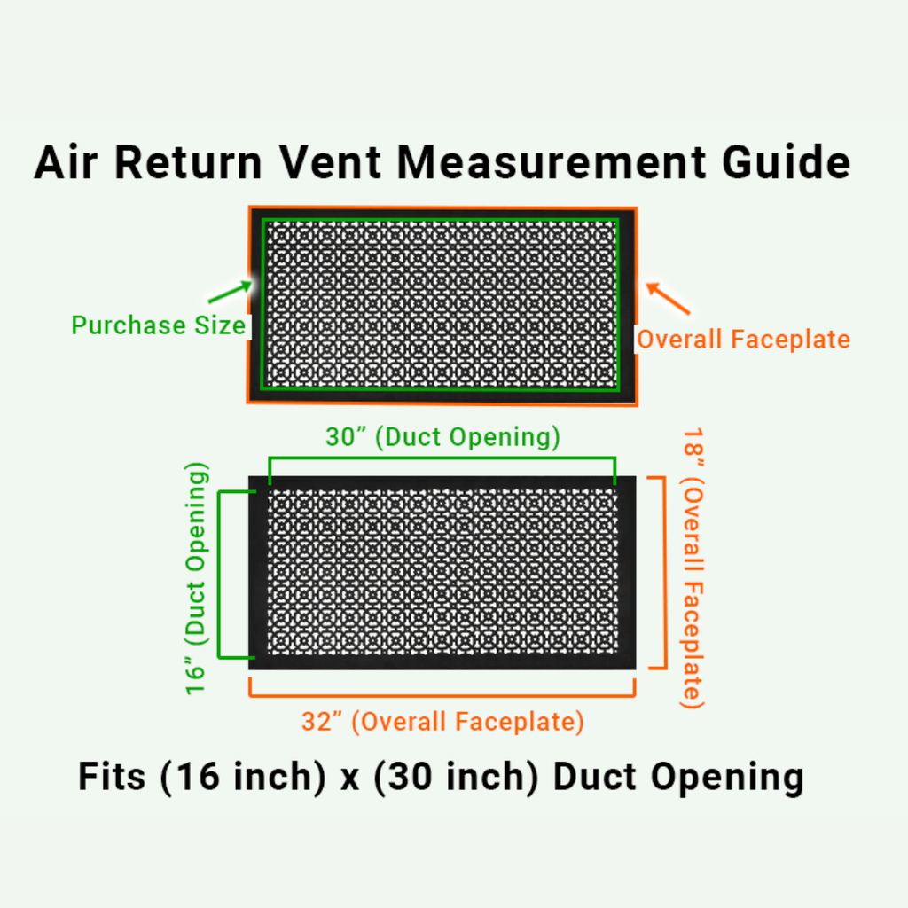 SIZE: Fits standard duct opening of 16”x30" (Overall Face Plate size 18"x32”)