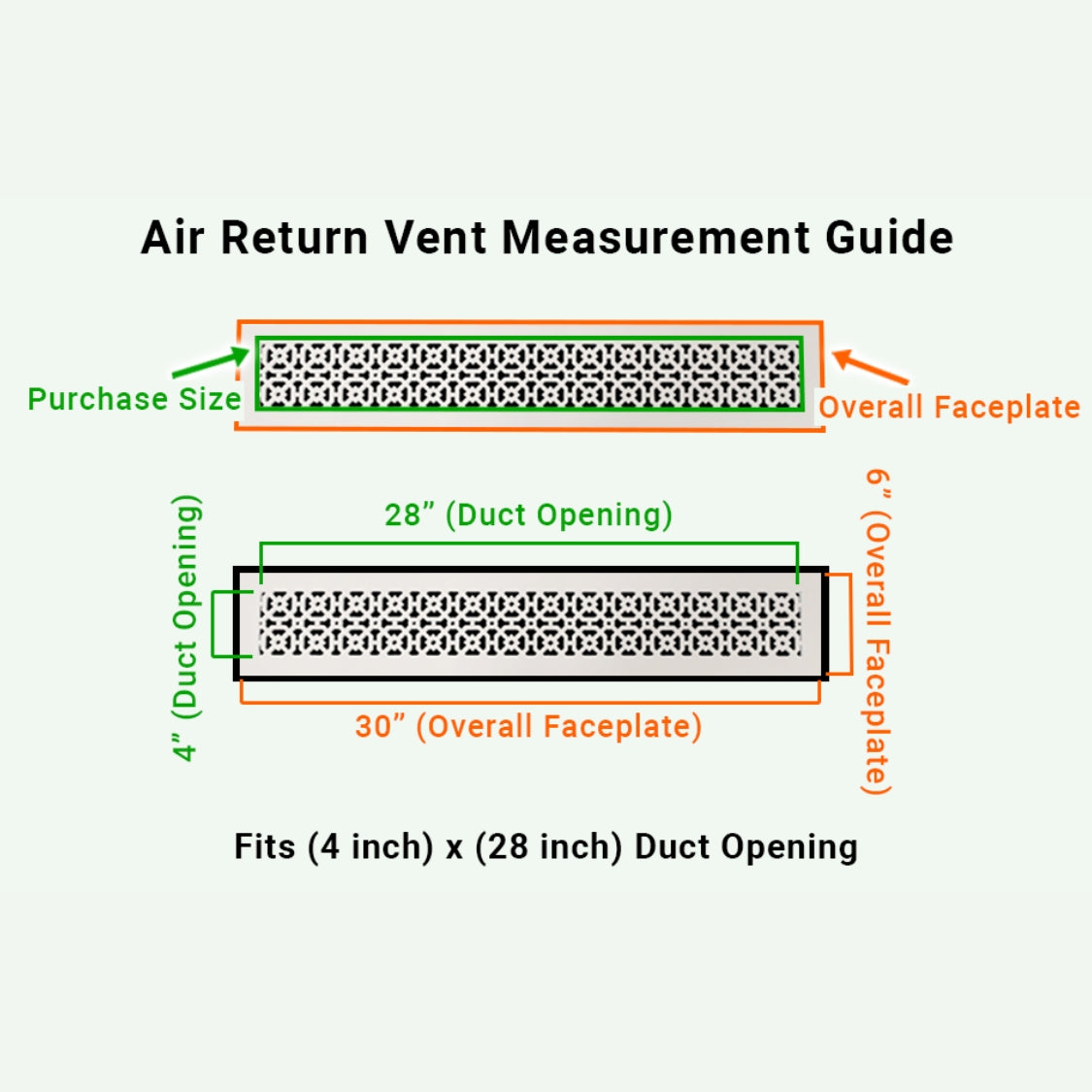 • Fits standard duct opening of 4”x 28” (Overall face plate size 6”x30”)