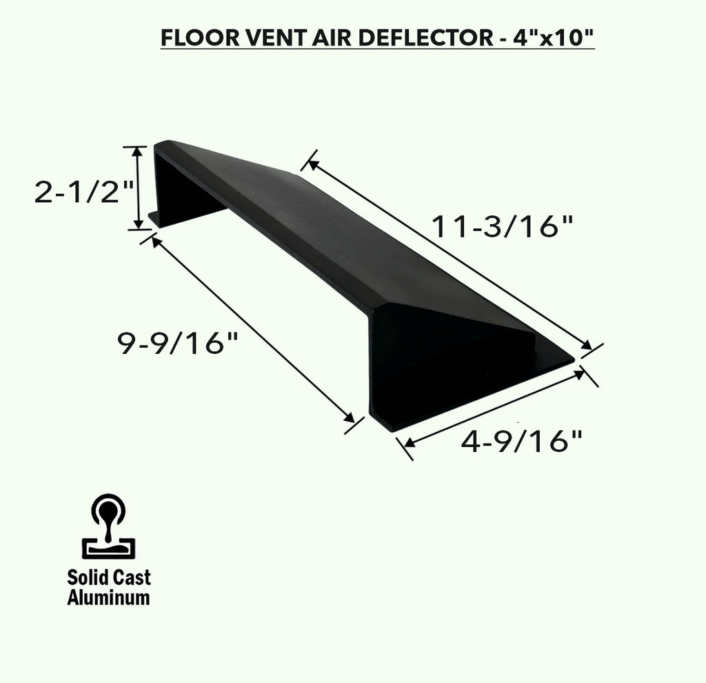 AIR DIVERTER / DEFLECTOR IN METAL FOR 4” X 10” & 3” X 10” FLOOR VENT IN SOLID CAST